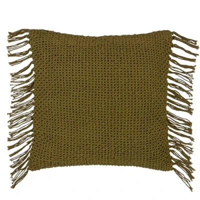 Inspired by nature tones, the Nimble cushion features an all-over knitted design in a range of earthy colours and is complete with a plain, durable cotton reverse. Finished with a double-sided tasselled fringe trim, this modern classic is the perfect addition to layer into your interior.