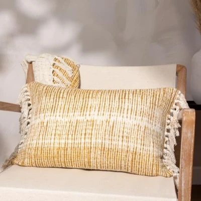 Featuring a printed abstract design. Complete with a plain reverse, double-sided tasselled trim and hidden zip closure. Made with super soft, 70% Cotton 30% Polyester fabric. Pair with the Sono Ink throw for a relaxed, understated co-ordinated look. Machine Washable (30 degrees max), Low Tumble Dry and Warm Iron Only.