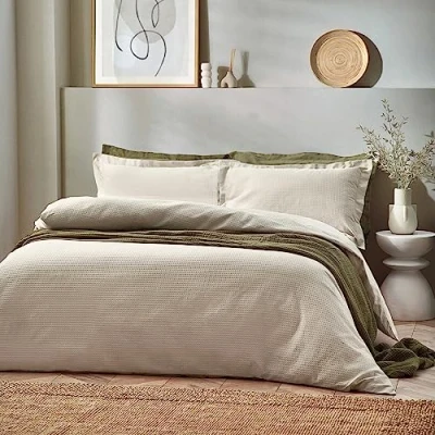 AmazonFeaturing a unique 3D waffle weave design on soft, durable fabric. Complete with a plain reverse, Oxford border and button fastening. Available in a range of soothing colours. Made with super soft, 100% Cotton fabric, perfect for a great nights sleep. Includes one matching pillowcase for the Single size, all other sizes include two matching pillowcases.