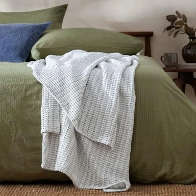 SOFT WAFFLE TEXTURE: A beautifully woven waffle design adds gentle depth and a relaxed, tactile feel to your bedroom. 100% NATURAL COTTON: Crafted from pure cotton for breathable comfort, offering a naturally soft touch that supports everyday wellbeing. LIGHTWEIGHT LAYERING PIECE: Ideal for year-round use, this bedspread drapes effortlessly whether styled loosely or folded neatly. YARN DYED STRIPE DETAIL: Subtle woven stripes introduce a soft hint of colour, creating timeless appeal without overpowering your space. DURABLE CRAFTSMANSHIP: Expertly woven to retain its texture and finish, ensuring long-lasting style and comfort.