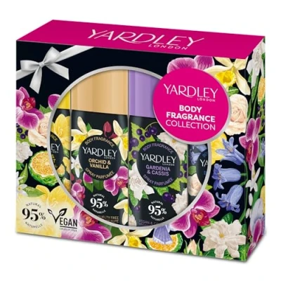 BODY SPRAY GIFT SET FOR LADIES – Indulge in a Yardley London body spray set designed for women, with four classic scents in portable 50ml cans. Experience an uplifting spritz for any occasion, wherever you are. FINE FRAGRANCE EXPERIENCE – Each spray features a carefully blended combination of floral, fruity and woody notes, delivering a sophisticated alternative to typical body sprays. Enjoy effortless freshness all day long. CHOOSE YOUR SIGNATURE SCENT – This set includes Freesia & Bergamot, Bluebell & Sweet Pea, Gardenia & Cassis, plus Orchid & Vanilla. Discover your new favourite body spray with each use. PERFECT FOR TRAVEL – Each can is handbag-sized, making it a practical choice for work, school, trips or nights out. Enjoy easy application and lasting fragrance, whether at home or when travelling. IDEAL GIFT OR EVERYDAY LUXURY – The full set contains 4 x 50ml sprays (237g, 12.2 x 2.8 x 14.2cm), beautifully presented for gifting or daily self-care. Rely on them for daily freshness and confidence.