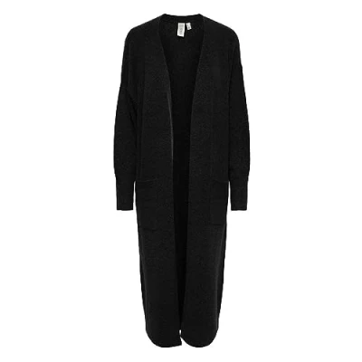 YAS Women's balis Ls Long Knit Cardigan S. Noos Sweater, Black, M