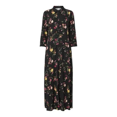 YAS Women's Yassavanna Long Shirt Dress S. Noos Dress, Black/Stripes:w White Stripes, L