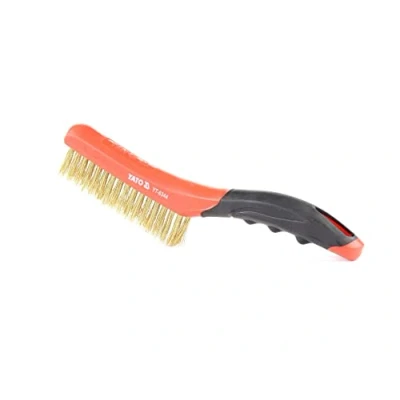 Steel brush 4 rows. Shape writing handles. 25 mm long bristles. Brass spark plug brush. Handle made of rubber surface., Weight: 0.32628414776 Pounds, Manufacturer: Yato