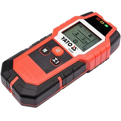 Digital detector for detecting metal, power lines and wood Metal range: 60 - 80 mm, range of power lines, 50 mm, range of wood: 20 mm LCD display / shockproof ABS plastic housing Power supply: 9 volt block battery (not included) / weight (including battery) 160 g Dimensions (L x W x H): 145 x 67 x 25 mm / with nylon bag, Weight: 0.2755778275 Pounds, Manufacturer: Toya