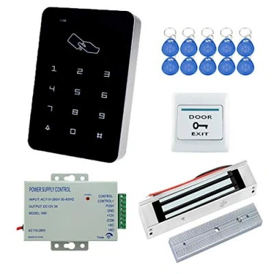 YAVIS Full Set Door Entry Access Control System Kit Controller Keypad 125KHz Reader + 180kg / 350lbs Electric Magnetic Lock DC12V Power Supply+Exit Button+10pcs RFID Key fobs