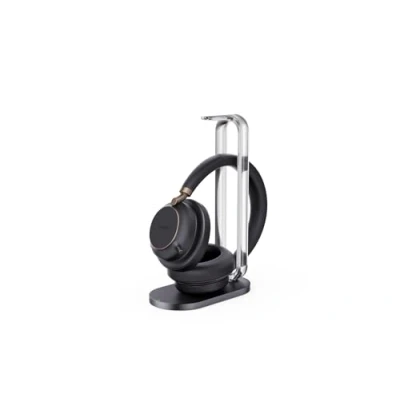 Stereo headset with Bluetooth USB-C dongle, USB-C to USB-A adapter and a charging station Retractable hidden microphone boom Multiple microphones with acoustic shield technology 3-stage active noise cancellation (ANC) Up to 40 hours of battery life (music) and 35 hours talk time Integrated Busylight on both sides for visibility from all viewing angles Excellent audio experience and comfort for all day wear Flexible switching between over-ear and on-ear Microsoft Teams certified for effective teamwork