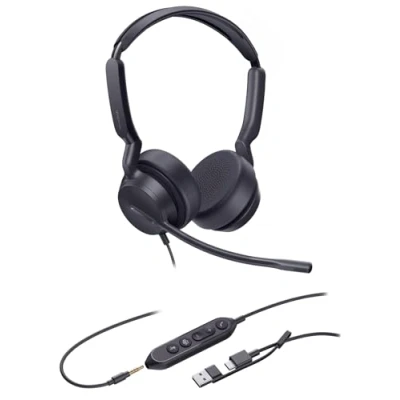 Wired Headset 3.5mm, USB-A and USB-C Port - Flexible connectivity options for PC, laptop or compatible devices Superior Audio Quality - Crystal clear sound with dynamic speaker for professional conversations Plug & Play - No driver installation necessary - ready to use In-line control - volume, mute and call answering can be controlled directly on the cable