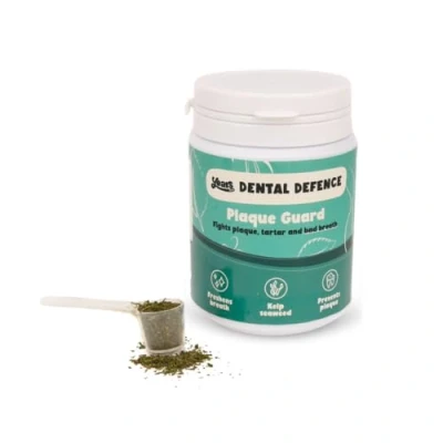 FIGHTS PLAQUE - Freshen breath, fight plaque and tartar buildup with Years Dental Defence Plaque Guard. Just sprinkle it on your dog's food for easy daily dental hygiene. 100% NATURAL - All natural with kelp, spearmint, parsley, spinach, and matcha to reduce plaque, freshen breath, and support overall oral health. BETTER INGREDIENTS - Unlike other brands that use only kelp, Years Dental Defence Plaque Guard combines multiple natural ingredients to provide comprehensive oral hygiene support for your pet. EASY TO USE: Skip the hassle of brushing, dental sticks, and vet visits! Simply sprinkle Years Plaque Defence on your dog's food for effortless daily dental hygiene. Made in the UK. SUITABILITY - Years Plaque Guard is suitable for dogs of all breeds from 12 weeks and older. However, it is not recommended for pregnant dogs or dogs with thyroid disease. Always serve with food.