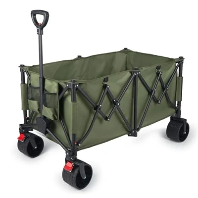 YEAUPE PRO Handcart Foldable 200 300L 150 kg, with Parking Brake, 4 Way Folding, Height Adjustable for Camping, Beach Trolley, Garden, Shopping, Olive Green