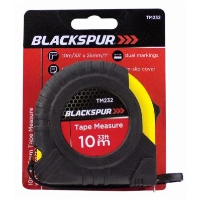 SPECIFICATIONThis tape measure is manufactured with dual markings & protective rubber effect non-slip cover.Size: 10m/33’ x 25mm/1”BARCODE 5017403 077626CARTON QTY 24/0 Pcs APPROX ITEM WEIGHT 359gPACKAGING Carded