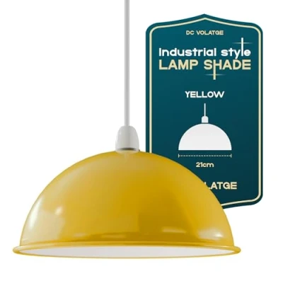 Yellow Industrial Ceiling Light Shades, 21cm Metal Dome Easy Fit Vintage Lamp Shades for Replacement Pendant Lighting Wall Lamps Table Bedroom, Kitchen, Office