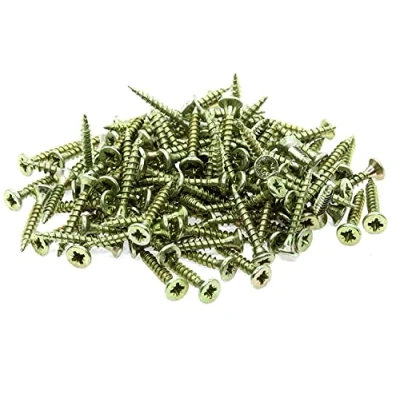 Yellow Small Steel Countersunk Wood Screws Chipboard Pack of 100 (3mm x 13mm)