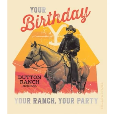 Yellowstone birthday card featuring western-inspired design, ideal for fans of the popular TV series. Tailored to bring a smile by Europe's leading publisher of Licensed Greetings Cards Arrives with a suitably sized envelope for your convenience Perfect addition to any birthday gift or birthday party, adding a unique and personal touch Thoughtfully designed birthday card featuring eye-catching artwork and a celebratory message, ideal for making their special day even more memorable.