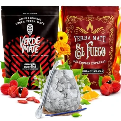 yerba mate set Verde and El Fuego Energia with accessories Energizing guarana Calabash, bombilla Original Natural caffeine 2x500g 1kg