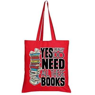 Yes I Really Do Need All These Books Birthday Gift Lover Teachers Day End Of Term Shoulder Bag Shopping Shoppers Tote (Red)