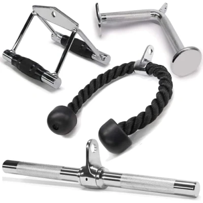 Yes4All 4M82 Combo Double D Handle Cable Attachment, Tricep Rope/Tricep Pull Down Rope, Rotating Straight Bar, and V Shaped Bar