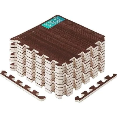 Yes4All EVA Interlocking Mats, Puzzle Floor Tiles, Foam Padding with Border for Furniture, Home Space, Living Room, Garage Dark Walnut Wood, 1.02 m2