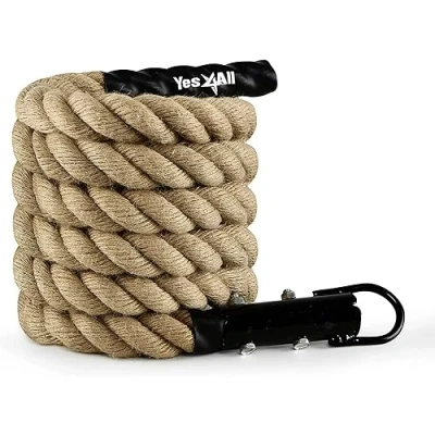 STURDY BRAIDED HEMP ROPE: Yes4All Gym Climbing Rope is constructed of heavy-duty sisal rope. This climbing rope provides a good feel with easy grip and supports up to 226.8 kg when mounted correctly 3 M LENGTH x 3.8 CM DIAMETER GYM EXERCISE ROPE: Excellent rope for all kinds of exercises, such as climbing, up-down waves, etc. It can be used to improve grip strength, develop upper body, and enhance the coordination & agility HEAT SHRINK END CAPS: Yes4All Climbing Rope features heat shrink end caps with a high-quality black rubber cover to prevent fraying, as well as provide better grip and protection for your hands EASY TO INSTALL & USE: Yes4All Gym Climbing Rope comes with a heavy-duty steel anchor to safely secure the rope indoor or outdoor. You can attach it on any fixed point to do climbing exercises and strength training CONVENIENT FOR STORAGE & TRANSPORT: The flexible design makes the rope easy to carry and fits easily into your gym bag so that you can take it anywhere. Just roll up the rope after use and store it in a dry place without taking up too much space
