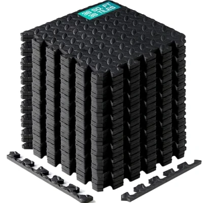 Yes4All M8RZ Interlocking Exercise Foam Mats with Border Floor for Gym Equipment Eva Tiles (Black)