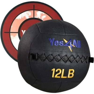 Yes4All U5WN 5.4kg Wall Ball Soft Medicine Ball/Wall Med for Full Body Workout and Strength Exercise, Negro