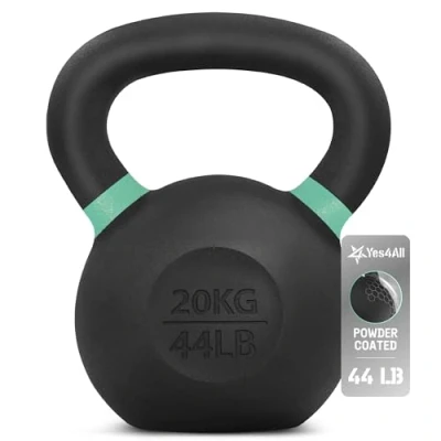 HIGH-QUALITY CAST IRON KETTLEBELL: Constructed of solid cast iron with no welds, weak spots, or seams. Powder coating prevents corrosion and offers you a better grip with no slipping in your hand like a glossy finish COLOR-CODED RINGS AND DUAL MARKINGS FOR BOTH WEIGHT UNITS: color-coded rings make different weights easy to identify at a glance. Each kettlebell is labeled with both lb and kg. No need to use the calculator to figure out how much you are swinging WIDE SMOOTH SLIGHTLY TEXTURED HANDLE AND FLAT BASE: Smooth, slightly textured handle provides a secure grip for high reps, makes chalk unnecessary. Flat bottom enables upright storage, ideal for renegade rows, handstands, mounted pistol squats and more MOST VERSATILE AND FUNCTIONAL FITNESS EQUIPMENT: Used for swings, deadlifts, squats, lifting, get-ups and snatches to workout and increase strength of many muscle groups and body parts including biceps, shoulders, legs, and more BUILD STRENGTH, POWER AND ENDURANCE: Achieve your fitness goals faster with Yes4All powder coated cast iron kettlebells. Kettlebells are effective total body cardio, fat burning, and muscle toning