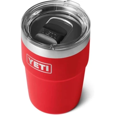 YETI Rambler Cup, Vacuum Insulated Stainless Steel Stackable Cup with Magslider Lid, Rescue Red, 16 oz (475 ml)
