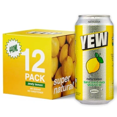 Zesty Lemon Sparkling Water - A zingy and refreshing flavoured sparkling water with natural Sicilian lemon extract, ZERO sugar, ZERO Calories and nothing artificial. ZERO Sugar Drinks - A healthy soft drink alternative with ZERO sugar, ZERO sweeteners, and ZERO Calories - just sparkling water and natural flavour. Sparkling Water for Every Occasion - A 12-pack of convenient 440ml fizzy drink cans, perfect for on-the-go, at work, relaxing at home straight from the fridge, or bringing to a BBQ. Super Natural Refreshment - Stay hydrated throughout the day with crisp, sparkling water that keeps you feeling refreshed and vital. A Cleaner Take on Soda - YEW delivers the sparkle and satisfaction of fizzy sodas with absolutely NO artificial ingredients, making it a standout zero sugar carbonated treat.
