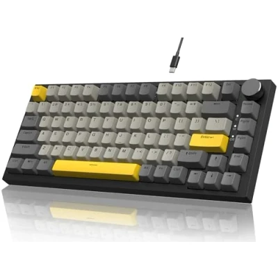 【75% ANSI Layout & Knob Design】Adopt the most popular 75% AINSI layout,81keys,making it a practical choice for work/gaming. It retains essential arrow and function keys while freeing up desk space.Easy control with the built-in volume knob maded from high-grade CNC aluminum.Rotate left/right to change the volume,and press the knob to turn on/off the light.Also customize the function of the knob. 【Upgraded Gasket-Mount Mechanical Keyboard】The new upgrade! Built-in 5 layers of sound insulation cotton between the top panel,switch,PCB,and bottom,including: PORON Sandwich Cotton, 8 × IXPE Switch Pad, PET Sound Absorbing Foam, Sponge Case Foam, Bottom Silicone Pad.Noise is maximally reduced,It achieve an ultimate soft,pure sound and smooth typing experience. 【1.2mm PCB Single key Slotted Design】Adopt single key slotted PCB design,improve key stability and input experience, accurately position and press the key, prevent the key bounce and mistouch, greatly improve the sensitivity and response speed of the keyboard, for typing and operation to provide a more smooth experience. 【Hot-swappable & Linear Moon Yellow Switch】High-quality 1.2mm PCB supports 3/5-pin hot-swappable,so you can enjoy the fun of making your own unique keyboard.Linear pre-lubed Moon Yellow switch is the quiet and comfortable switch.Particularly ideal for long-time use in gaming/work,and well-balanced performance in all aspects.The durable stem is credited to a more smooth and pleasing typing experience. 【Premium PBT Keycaps & South-facing RGB Backlight】AK820 keyboard comes with double-shot PBT keycaps,which provides more comfortable fingertip feel with oil resistance for long-term use.The south-facing RGB is designed to better illuminate the keyboard backlight from the typist’s angle and free from interference while changing the switches.