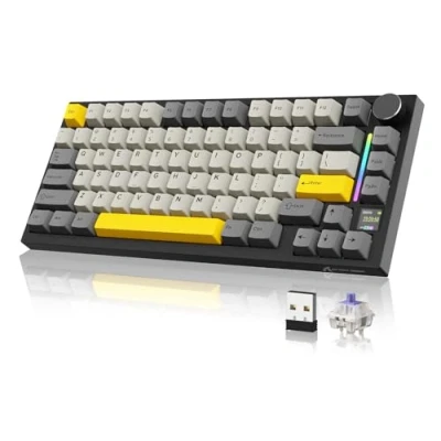 【75% ANSI Layout & Upgraded Gasket-Mount】Adopt the most popular 75% AINSI layout, making it practical choice for work/gaming. Fully equipped internal filling structure. Built-in 5 layers sound absorbing foams,including: PORON Sandwich Cotton, 8 × IXPE Switch Pad, PET Sound Absorbing Foam, Sponge Case Foam, Bottom Silicone Pad. Noise is maximally reduced, It achieve an ultimate soft, pure sound and smooth typing experience. 【Multi-Function TFT Smart Display & Knob Design】The gaming keyboard built-in smart TFT color display can intuitively display the keyboard status, including custom gif image,connection mode, WIN/MAC, battery,Lighting,volume. Built-in mechanical knobs allow quick adjustment of complex functions:volume adjust ,modes switch,screen control.Customize the screen and knobs to bring you more fun. 【Triple Connection Modes & Multi-Device Tasking】The X820Ultra supports Bluetooth or 2.4Ghz for wireless connectivity, or with the USB-C cable.With Bluetooth 5.1, the keyboard responses faster and save more power than the former Bluetooth versions.It is also easily switched among the three modes for efficient multitasking.Included 4000mAh battery ensures a long use. 【Hot-swappable & Single key Slotted Design】1.2mm PCB adopts leading ENIG technology. It supports 3/5-pin hot-swappable,with Linear pre-lubed blueberry switch,so you can enjoy the fun of making your own keyboard.Adopt single key slotted PCB design, improve key stability and input experience, accurately position and press the key, prevent the key bounce and mistouch,greatly improve the sensitivity and response speed of the keyboard. 【Programmable RGB & South-Facing LED】All the RGB lights built into the programmable mechanical keyboard are customized for you in south-facing design. With two-color injection molded PBT keycaps, soft RGB lights are output through the gaps in the keycaps.You can Use "FN+|" to switch between 22 modes default lighting. Those who like more DIY can also use compatible software to freely create their favorite effects. 【Support QMK & Compatible with Mac/Win】Programming in QMK Web Driver: https://qmk.top/. The custom keyboard support QMK web driver .The RGB mode, Key setting, Macro and Gif image display settings of the keyboard can be fully customizable. It is fully compatible with both Mac and Windows systems,ensuring that you can enjoy the full range of its features irrespective of your computing preferences., Platforms: Windows