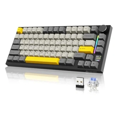 【75% ANSI Layout & Upgraded Gasket-Mount】Adopt the most popular 75% AINSI layout, making it practical choice for work/gaming. Fully equipped internal filling structure. Built-in 5 layers sound absorbing foams,including: PORON Sandwich Cotton, 8 × IXPE Switch Pad, PET Sound Absorbing Foam, Sponge Case Foam, Bottom Silicone Pad. Noise is maximally reduced, It achieve an ultimate soft, pure sound and smooth typing experience. 【Multi-Function TFT Smart Display & Knob Design】The gaming keyboard built-in smart TFT color display can intuitively display the keyboard status, including custom gif image,connection mode, WIN/MAC, battery,Lighting,volume. Built-in mechanical knobs allow quick adjustment of complex functions:volume adjust ,modes switch,screen control.Customize the screen and knobs to bring you more fun. 【Triple Connection Modes & Multi-Device Tasking】The X820Ultra supports Bluetooth or 2.4Ghz for wireless connectivity, or with the USB-C cable.With Bluetooth 5.1, the keyboard responses faster and save more power than the former Bluetooth versions.It is also easily switched among the three modes for efficient multitasking.Included 4000mAh battery ensures a long use. 【Hot-swappable & Single key Slotted Design】1.2mm PCB adopts leading ENIG technology. It supports 3/5-pin hot-swappable,with Linear pre-lubed blueberry switch,so you can enjoy the fun of making your own keyboard.Adopt single key slotted PCB design, improve key stability and input experience, accurately position and press the key, prevent the key bounce and mistouch,greatly improve the sensitivity and response speed of the keyboard. 【Programmable RGB & South-Facing LED】All the RGB lights built into the programmable mechanical keyboard are customized for you in south-facing design. With two-color injection molded PBT keycaps, soft RGB lights are output through the gaps in the keycaps.You can Use "FN+|" to switch between 22 modes default lighting. Those who like more DIY can also use compatible software to freely create their favorite effects. 【Support QMK & Compatible with Mac/Win】Programming in QMK Web Driver: https://qmk.top/. The custom keyboard support QMK web driver .The RGB mode, Key setting, Macro and Gif image display settings of the keyboard can be fully customizable. It is fully compatible with both Mac and Windows systems,ensuring that you can enjoy the full range of its features irrespective of your computing preferences., Platforms: Windows