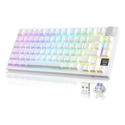 【75% ANSI Layout & Upgraded Gasket-Mount】Adopt the most popular 75% AINSI layout, making it practical choice for work/gaming. Fully equipped internal filling structure. Built-in 5 layers sound absorbing foams,including: PORON Sandwich Cotton, 8 × IXPE Switch Pad, PET Sound Absorbing Foam, Sponge Case Foam, Bottom Silicone Pad. Noise is maximally reduced, It achieve an ultimate soft, pure sound and smooth typing experience. 【Multi-Function TFT Smart Display & Knob Design】The gaming keyboard built-in smart TFT color display can intuitively display the keyboard status, including custom gif image,connection mode, WIN/MAC, battery,Lighting,volume. Built-in mechanical knobs allow quick adjustment of complex functions:volume adjust ,modes switch,screen control.Customize the screen and knobs to bring you more fun. 【Triple Connection Modes & Multi-Device Tasking】The X820Ultra supports Bluetooth or 2.4Ghz for wireless connectivity, or with the USB-C cable.With Bluetooth 5.1, the keyboard responses faster and save more power than the former Bluetooth versions.It is also easily switched among the three modes for efficient multitasking.Included 4000mAh battery ensures a long use. 【Hot-swappable & Single key Slotted Design】1.2mm PCB adopts leading ENIG technology. It supports 3/5-pin hot-swappable,with Linear pre-lubed blueberry switch,so you can enjoy the fun of making your own keyboard.Adopt single key slotted PCB design, improve key stability and input experience, accurately position and press the key, prevent the key bounce and mistouch,greatly improve the sensitivity and response speed of the keyboard. 【Programmable RGB & South-Facing LED】All the RGB lights built into the programmable mechanical keyboard are customized for you in south-facing design. With two-color injection molded PBT keycaps, soft RGB lights are output through the gaps in the keycaps.You can Use "FN+|" to switch between 22 modes default lighting. Those who like more DIY can also use compatible software to freely create their favorite effects. 【Support QMK & Compatible with Mac/Win】Programming in QMK Web Driver: https://qmk.top/. The custom keyboard support QMK web driver .The RGB mode, Key setting, Macro and Gif image display settings of the keyboard can be fully customizable. It is fully compatible with both Mac and Windows systems,ensuring that you can enjoy the full range of its features irrespective of your computing preferences., Platforms: Windows
