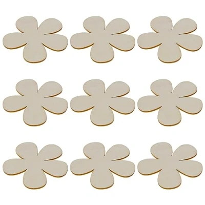 YINETTECH 30Pcs Blank Flower Shape Wood Chips Wooden Hanging Decorations Floral Slices Accessories for DIY Making Crafts Home Decor Set B
