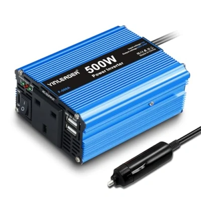 Yinleader 500W Power Inverter DC 12V to AC 230V 240V Transformer Car Charger Lighter Adapter with 3 Pin Plug and Dual USB Ports