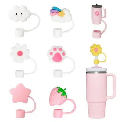 【Straw Toppers Compatible with 10mm Straws】The Stanley cup straw cover is designed for Stanley 30 and 40oz cup straws or simple modern 40oz cup straws. It matches all 10mm diameter straws.Please check your straw size before purchase. (Straws not included) 【8Pcs Straw Covers】 Set of features 8 unique designs, including Clouds, flowers, strawberries, water cups, cat paws, five-pointed stars, etc. It keeps your straws cute and delicate,making your cup unique. 【Straw Toppers-Safe Material】The straw cap is made of food-grade silicone material, Strong, flexible.It is non-toxic and odorless, very safe for you. It is reusable and easy to wash by hand or in the dishwasher. 【Convenient and Practical】 These straw covers are very easy to install and remove, and suitable for carrying around. They can protect your cup from dust, insect flies, spray, and prevent water from leaking out. Ensure your drink is safe. Great for indoor and outdoor activities. 【Perfect Gift】The uniquely designed straw cover is perfect for sharing with family. The exquisite Stanley cup accessories are a great gift for family or friends., Manufacturer: YISCOKO