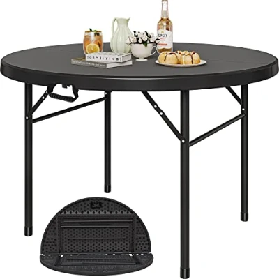 YITAHOME 122cm Round Folding Table for Outdoor/Indoor, Heavy Duty Plastic w/Thick Top and Sturdy Metal Frame, Ideal Party Picnic Camping BBQ Events, Black