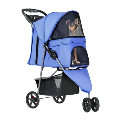 YITAHOME 15 kg Foldable Dog Stroller, Cat Stroller with 3 Wheels, Mesh Windows, Cup Holder, and Brakes, Suitable for Medium Sized Denim Blue
