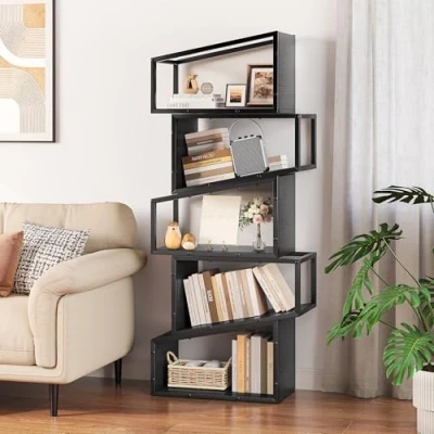 Tall book shelf - The tall bookcase maximises vertical space, measuring 28 x 58 x 150 cm. It features 6 open shelves suitable for most book sizes, providing ample storage space Durable Display Cabinets - The living room bookcases is made of waterproof wood and solid metal frames, ensuring durability. Each shelf can support up to 20 kilograms, and an anti-tip kit can secure it to the wall, enhancing stability and safety Practical Shelf Unit - The book shelves includes additional side display space for enhanced accessibility, serving as a freestanding bookshelf, wall shelf unit, photo corners, or display cabinet, suitable for corners, living rooms, or study areas Freestanding Bookshelf - This freestanding bookcase features an open-shelf design, allowing you to display your books, CDs, and decorative items from multiple angles. It can also serve as a room divider. This black shelves complements your overall decor. Easy Assembly - With clearly labelled components and detailed, easy-to-follow assembly instructions, you can quickly assemble the wooden book shelf