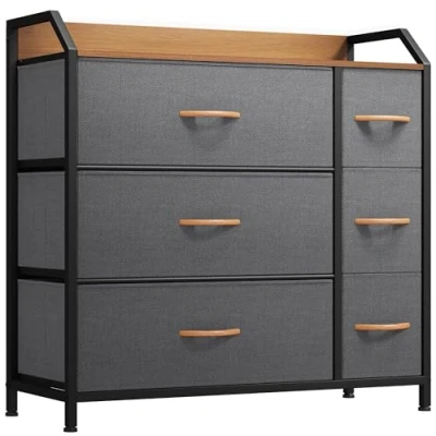 STURDY CONSTRUCTION- Made of reliable metal frame and durable MDF wooden top; 6 removable and foldable drawers; Easy pull handles help conveniently open and close the drawers; 4 adjustable plastic feet help protect your floor from scratches DURABLE FABRIC- The front side is made with fabric and other sides adopt breathable non-woven synthetic fabric; Easy Care - wipe clean with a damp cloth and allow to air dry EASY TO ASSEMBLE- Detailed instructions and installation video will guide you installation process, and hardware is included in the package so only fastening some screws will take energy UNIVERSAL MATCH- dark grey fabric drawers, sturdy white metal frame and waterproof wooden tabletop give the storage organizer a modern style. This unit easily fits in various living spaces: living rooms, bedrooms, hallways, entryways, closets etc. HIGH CAPACITY- 6 drawers of different sizes provide more storage choices, and sufficient space creates a neat and clean space for your bedroom or living room. Overall dimensions: 80 x 29 x 79 cm (L x W x H).Drawer dimensions: 54.1 x 29 x 19 cm (L x W x H) / 19.5 x 29 x 19 cm (L x W x H)
