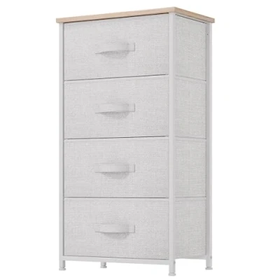 Sturdy Construction: Built from a reliable metal frame and durable MDF wooden top; features 4 removable, foldable drawers and easy-pull handles. Adjustable feet prevent floor scratches. Durable Material: The front is crafted from high-quality fabric, while the sides are made of breathable non-woven synthetic fabric. Easy to clean with a damp cloth and air dry. Simple Assembly: Comes with detailed instructions and an installation video, making setup straightforward. All hardware included; just fasten a few screws. Versatile Style: Modern design with d fabric drawers, metal frame, and a waterproof wooden tabletop. Ideal for living rooms, bedrooms, hallways, and nurseries.etc. Ample Storage: deep drawers offer plenty of storage options, creating a tidy and organized space. Overall dimensions: 45 x 30 x 94 cm (L x W x H), drawer dimensions: 40 x 28 x 21 cm (L x W x H).