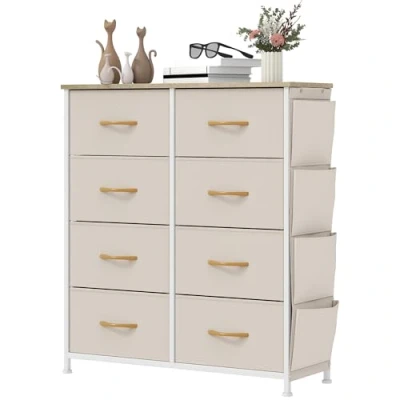 YITAHOME Chest of Drawers with 8 Drawers, Fabric Cabinet Side Pocket&Hooks,Easy Pull Handle,Sturdy Steel Frame,Storage for Bedroom, Closet, Clothes,Beige