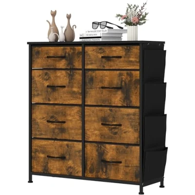 YITAHOME Chest of Drawers with 8 Drawers, Fabric Side Pocket&Hooks,Easy Pull Handle,Sturdy Steel Frame,Storage for Bedroom, Closet, Clothes,Rustic Brown