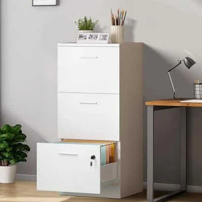 Large Lockable Filing Cabinet for Home & Office: This 3-drawer filing cabinet offers ample storage for A4 files, documents, and office supplies. The top drawer features a movable divider to organize small items securely, while adjustable hanging rods in lower drawers keep letters/binders tidy. Ideal as a space-saving storage cabinet (W40 x D40 x H101 cm) for homes or compact offices. Secure Lockable Storage-Anti-Tip Design: Keep sensitive files safe with the fully lockable filing cabinet (key included). Includes a wall-mounting metal kit to prevent tipping, meeting safety standards. Supports up to 50kg per drawer-ideal for heavy documents, printer storage, or office supplies. Multi-Purpose Vertical Cabinet for Small Spaces: More than a file organizer-use it as a printer stand, bedside cabinet, or sofa-side storage. Fits seamlessly under desks (under-desk filing cabinet) and in tight spaces. Great for home offices, dorms, or studios needing compact filing cabinets for home. Smooth Gliding Drawers with Heavy-Duty Slides: High-quality ball-bearing slides ensure whisper-quiet opening/closing. Drawers operate effortlessly, even when fully loaded-no more jarring stops or loud slams. A Bisley-style filing cabinet experience at an good price. Sturdy Wooden Construction & Easy Assembly: Made from robust wood-based materials with a scratch-resistant finish. Durable metal frame supports daily use, while the sleek design complements modern office cabinets. Includes clear instructions for quick setup-no tools needed!