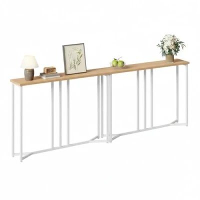 Console Tables for Hallway Slim: Choose the ideal fit for your space! This slim console table comes in two lengths: a compact 80cm for tight spots, and an extended 100cm for more display space. Ideal as a behind sofa table or a narrow hallway table, both versions solve space challenges. Use them as a versatile sofa table or a radiator console table. Dual Style Selection: Elevate your decor with this versatile hall table. Choose from two finishes: a bold Industrial look with burnt-wood texture and black frame, or a light Modern Farmhouse style with natural wood and white frame. This slim console table and narrow side table complements any interior theme. Built for Lasting Durability: Experience sturdy reliability. Our console table features a robust particleboard top and a strong black metal frame. This small console table is built to handle daily use, ensuring your items are safely stored and displayed for years. Stable & Safe for Your Home: Enjoy peace of mind with built-in stability. This console table includes 4 adjustable feet for uneven floors and an anti-tip kit for secure wall mounting. It's a safe, stable, and reliable narrow console table for households with small people and pets. Easy Assembly: Get set up in minutes! All parts, tools, and clear instructions are included for a easy assembly. You'll have your new slim console table ready to use in no time, making your home upgrade effortless and enjoyable.