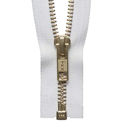 YKK 26"/ 66cm Metal Brass Open Ended Zip: White