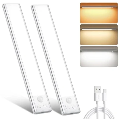 【Ultra Thin Magnetic Lights for Home】- With a thickness of just 9mm, this light blends seamlessly into your cabinets, shelves, closets, or workbenches without taking up extra space or ruining your aesthetic; Install in seconds using built-in magnets or included 3M adhesive strips. No drilling required and perfect for rental homes, cupboards, or mirrors 【Long Battery Lifespan Up to 96H】- Each light is equipped with a high-capacity rechargeable battery (1000mAh/1800mAh/2800mAh/5000mAh for 15or20.5/31/41/60cm lights), built-in rechargeable battery offers up to 96 hours of use on a single charge. USB-C charging is faster and more reliable, safer recharging with wide compatibility by using a laptop, power bank, or standard adapter 【Dimmable Brightness to Fit Every Mood & Task】- Whether you're slicing vegetables in the kitchen, selecting an outfit from your wardrobe, or simply creating a cozy evening ambiance, these great motion sensor lights indoor features stepless dimming from 100%–5%, or tap to switch between 5 brightness levels, let you adjust the brightness with precision to match every scenario 【Energy Efficient Motion Sensor Lights】- Equipped with energy-efficient LED beads, the lights consume minimal power while delivering bright, uniform, and flicker-free illumination; You can also switch between manual and automatic modes, or adjust brightness to suit different tasks and spaces. Whether you need a soft glow for ambiance or strong light for visibility, these lights deliver tailored illumination on demand 【Versatile lights for Home】- Designed with a slim, modern profile, easily match with different home decoration; Each pack includes 2 lights, 2 USB-C charging cables, and user manual. Perfect for under cabinet lighting, wardrobes, bookshelves, motorhomes, vanity mirrors and more