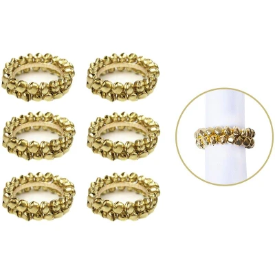 YÖL 6 Napkin Rings Gold Jingle Bells Metal Christmas Xmas Party Table Set Round