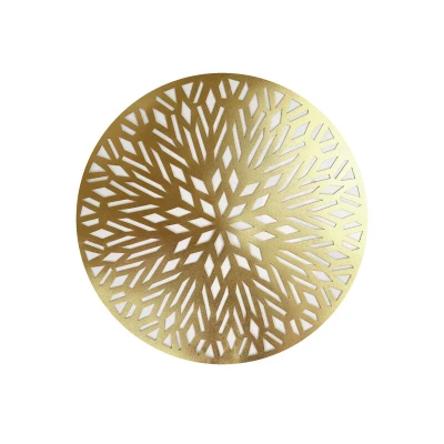 General description This set of 6 Metallic Placemats features a beautiful gold snowflake design, perfect for adding a festive touch to your Christmas table. The round shape and metallic finish enhance the overall decor, making it suitable for various celebrations beyond Christmas, including New Year's, birthdays, and other holiday parties. Technical specifications Placemat diameter: 38 cm Material: PVC Usage These placemats are designed to protect your table from spillages and damage while adding a glamorous finishing touch to your home decor. They can be placed anywhere in the house to enhance the festive atmosphere.