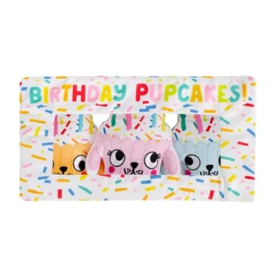 Interactive and Fun Playtime: The treat-hiding birthday plush cake dog toy is designed to provide both entertainment and comfort for your pet. Simply fill each cupcake with your dog's favourite treats, turning playtime into a rewarding experience that will keep your dog engaged and entertained for hours. Engaging Sounds and Textures: Featuring an internal squeaker in the cupcakes and crinkle material in the packet, this toy stimulates your dog’s senses and encourages active play. The squeaky sounds and crinkling noises make it even more enticing, keeping your dog intrigued and excited. Soft and Durable Construction: Made from high-quality polyester, this cuddly toy is soft enough to serve as a comforting companion while being durable enough to withstand chewing and tugging. The plush material is gentle on your dog’s teeth and gums, ensuring safe play. Perfect Size for Treats and Play: Each cupcake measures approximately 11.5cm x 10cm, making it the ideal size for hiding small treats. This design allows your dog to engage in a fun and rewarding activity as they work to uncover the tasty rewards hidden inside. Bright and Cheerful Color Options: Includes 3 smaller toys in vibrant colours—pink, blue, and orange—this toy adds a burst of colour and excitement to your dog’s playtime. The cheerful hues and birthday-themed design make it a fun addition to any celebration, ensuring your dog has a memorable and enjoyable time.