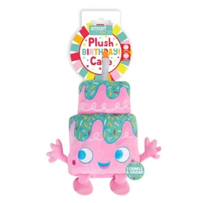 YöL Pink Birthday Cake Themed Soft Plush Pet Toy Squeaker Crinkle Effect Dog Puppy Stimulating Interactive Play